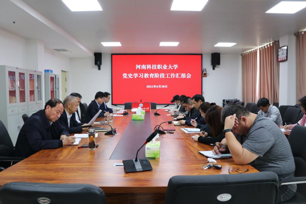 4月30日下午,校党委在党员活动室召开党史学习教育阶段汇报会,听取各总支、直属支部书记党史学习教育情况汇报,党委书记王剑出席会议并作总结讲话,党委班子成员参加会议。