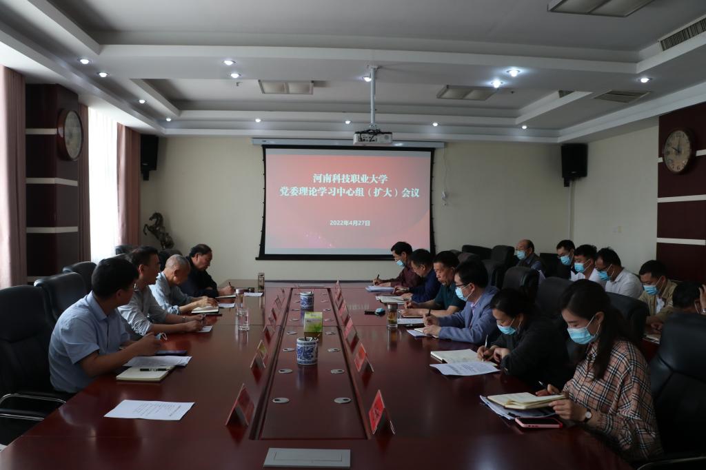 4月27日上午,我校在综合楼九楼会议室召开党委理论学习中心组(扩大)会议,深入学习领会习近平总书记在中国人民大学考察时的重要讲话精神。校党委书记王剑,校党委副书记司元亨、夏永亮,纪委书记凌现庄出席会议,校党委理论学习中心组成员、各党总支、直属党支部书记参加会议。会议由王剑主持。