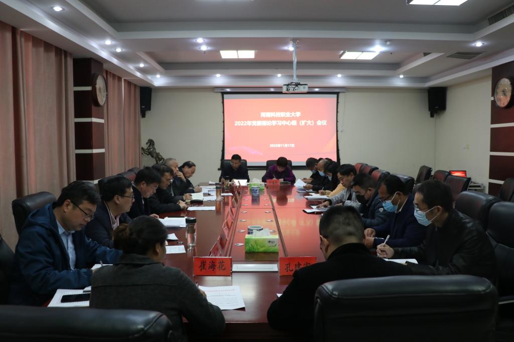 11月17日,我校在综合楼九楼会议室召开党委理论学习中心组(扩大)会议,党委理论学习中心组全体成员、校党委委员、各党总支、直属党总支部书记、马克思主义学院院长参加会议。会议由校党委书记王剑主持。