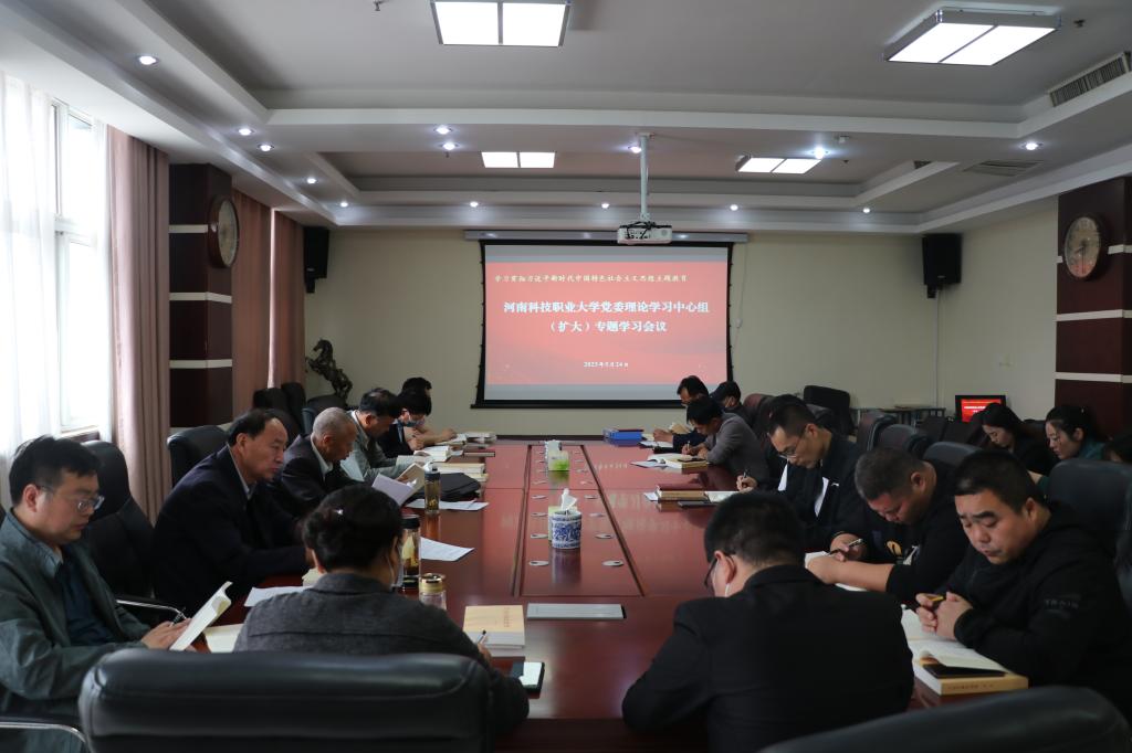 5月24日上午,我校在综合楼九楼会议室召开党委理论学习中心组(扩大)学习会,全面学习贯彻党的二十大精神,推动主题教育深入开展。党委理论学习中心组全体成员、校党委委员、各党总支、直属党总支部书记、马克思主义学院院长参加会议。会议由校党委书记王剑主持。