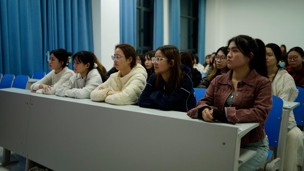 此次班会中各班主持人从近期高校高发的“购买游戏装备诈骗案”“二手商品高价回收案”“网课线下退费案”“刷单赚钱”等案例入手,用数据与身边故事敲响警钟,引发在场同学强烈共鸣。