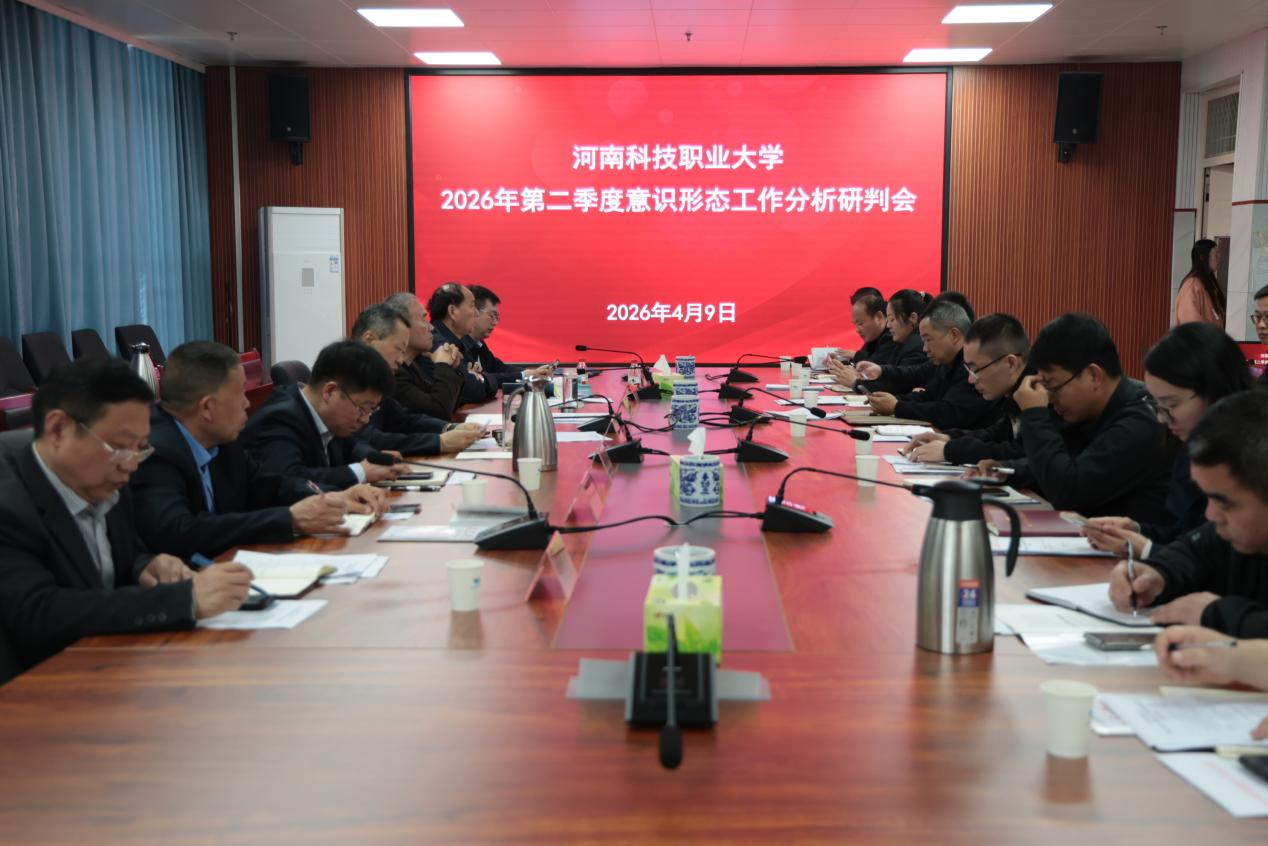 为深入分析当前学校意识形态领域形势,精准研判风险隐患,全面部署下一阶段意识形态工作,4月9日,我校在综合教学中心八楼会议室召开2026年第二季度意识形态工作分析研判会。校党委班子成员出席会议,各分党委(党总支、直属党支部)书记、各处室负责同志参加会议,会议由校党委书记张林主持。