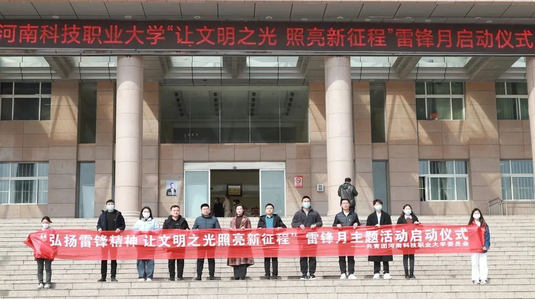 为贯彻落实习近平总书记“雷锋是时代楷模,雷锋精神是永恒”讲话精神,培育和践行社会主义核心价值观,弘扬“奉献、友爱、互助、进步”的志愿服务精神,深入推动学雷锋活动和志愿者行动开展,将雷锋精神赋予新的时代定义。3月1日下午,共青团河南科技职业大学委员会于综合楼前圆满举行“让文明之光 照亮新征程”雷锋月启动仪式。校党委宣传部部长、校团委书记刘晓娜,校团委副书记孔建富出席仪式,各学院团总支书记参加仪式。庄镒梦主持仪式。