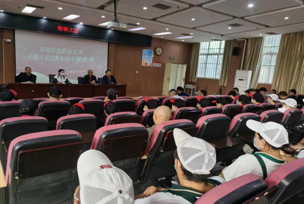 深入学习贯彻党的二十大精神,贯彻落实习近平总书记关于加强和改进民族工作的重要思想和关于宗教工作重要论述,引导师生铸牢中华民族共同体和法制意识,切实做好学校“双防”工作,2023年10月18日,党委统战部在综合楼软座阶梯教室对学校全体后勤人员开展宗教知识专题教育培训会。学校理事长、校长李海燕,党委副书记司元亨,统战部长刘春华,学工部长尚德山出席会议,后勤处及全体后勤人员参加培训会。