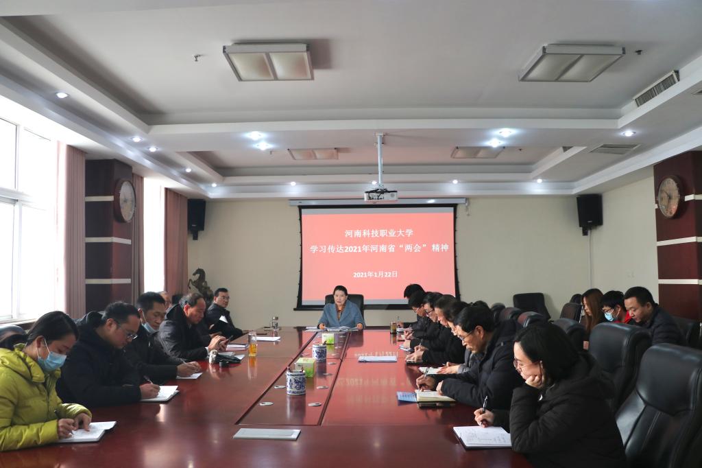 1月22日,我校中层以上党政领导干部在学校第一会议室举行集中学习会,听取周口市政协副主席、我校理事长李海燕传达学习贯彻河南省十三届人大三次会议精神。校领导王剑、司元亨、马金岭、许德宽、夏永亮、凌现庄和部分中层以上干部参加学习。