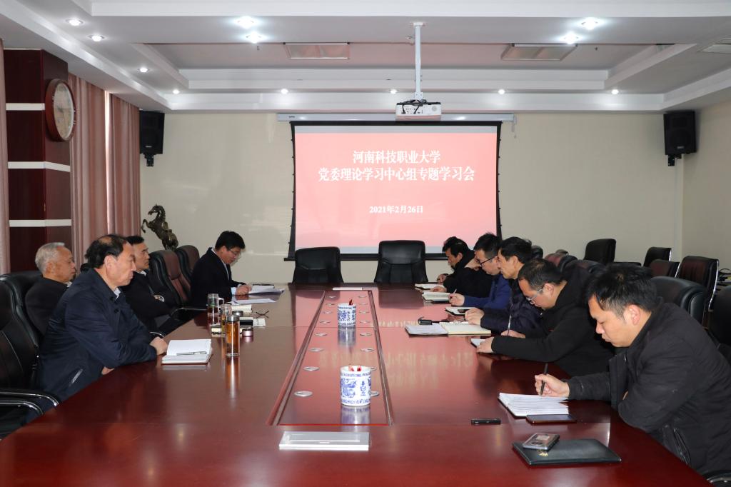 2月26日上午,我校在综合楼9楼会议室召开党委理论学习中心组专题学习会。全体党委理论学习中心组成员参加学习。会议由校党委书记王剑主持。