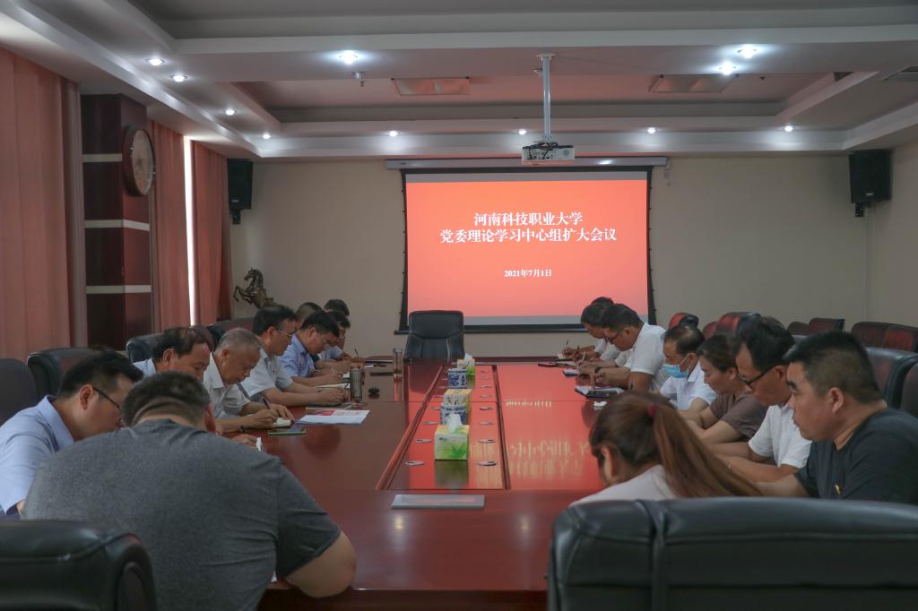 7月1日下午,我校在综合楼第一会议室召开党委理论学习中心组扩大会议。校党委书记王剑、党建指导员司元亨、党委副书记夏永亮、纪委书记凌现庄、副校长艾旭光、党委学工部部长尚德山、党委组织部部长门立志、党委委员孙天兴出席会议。各学院(部)党总支书记、直属党支部书记参加了会议。