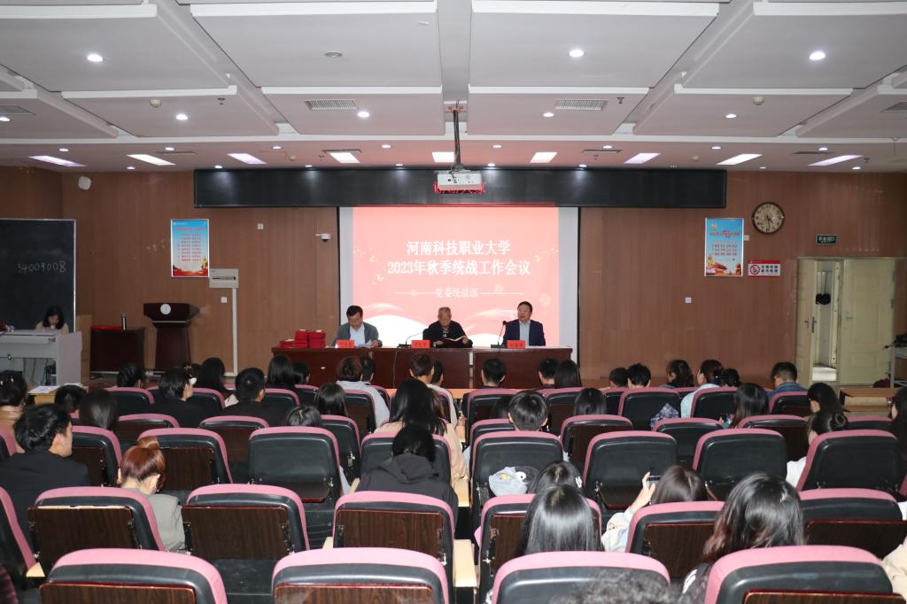 2023年10月19日下午,我校在综合楼西北一阶梯教室召开了2023年秋季统战工作会议,党委副书记司元亨,党委委员、组织部部长门立志,党委委员、统战部部长刘春华出席了会议,各二级学院党总支副书记与统战委员参加了会议。