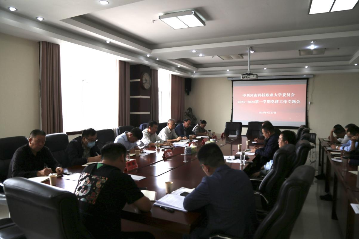 9月27日,我校在综合楼九楼会议室召开2023-2024第一学期党建工作专题会,校党委书记王剑,副书记司元亨、夏永亮,纪委书记凌现庄,党委委员、副校长师鹏,党委委员、校工会主席崔海花出席。党委各职能部门负责人、各党总支、直属党支部书记参加会议。会议由王剑主持。