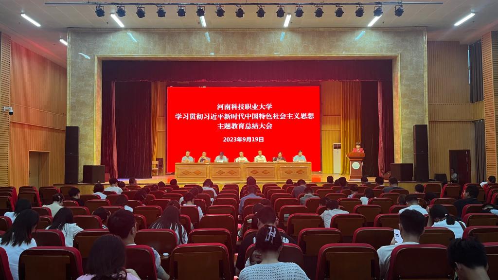 9月19日,我校在图书馆三楼报告厅召开学习贯彻习近平新时代中国特色社会主义思想主题教育总结大会,校党委书记王剑,副书记司元亨、夏永亮,校党委委员崔海花、尚德山、门立志、刘春华在主席台就座。全校中层党员干部、教师党员代表、学生党员代表参加会议。会议由司元亨主持。