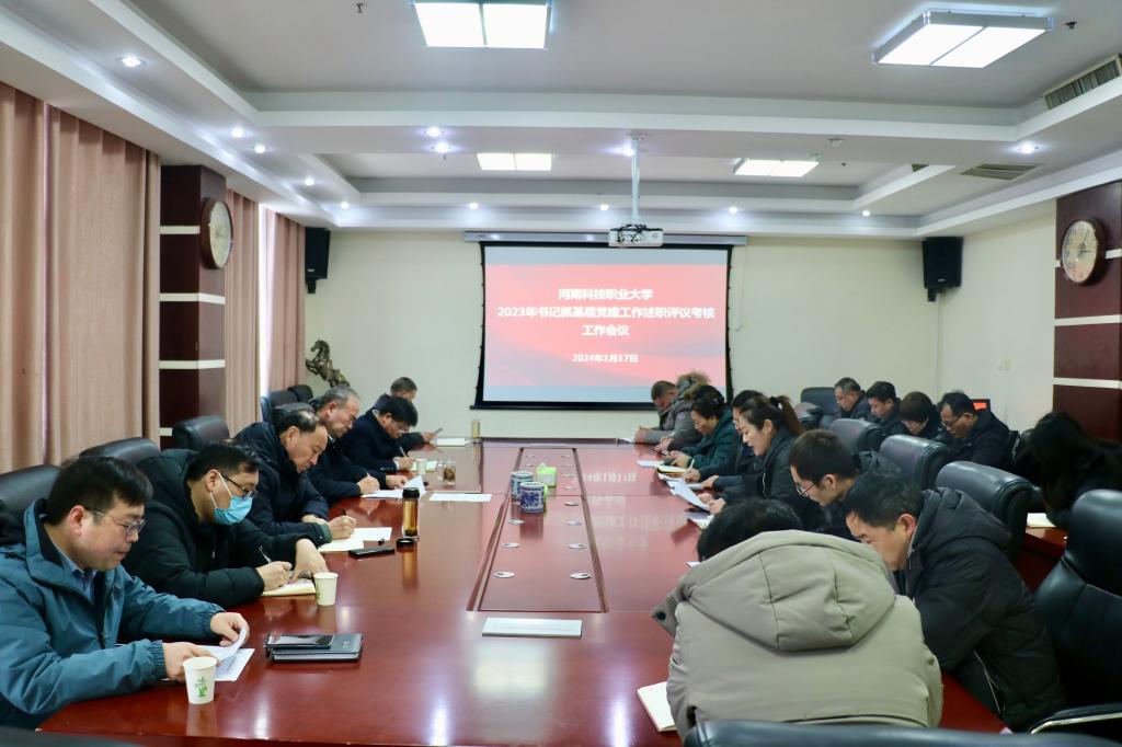 1月17日,我校在综合楼9楼会议室召开2023年度基层党组织书记抓党建工作述职评议考核工作会议。校党委书记苏宇,副书记夏永亮,纪委书记凌现庄,党委委员、副校长师鹏,学工部长尚德山,组织部长门立志出席会议,各党总支、直属党支部书记、副书记参加会议。会议由苏宇主持。