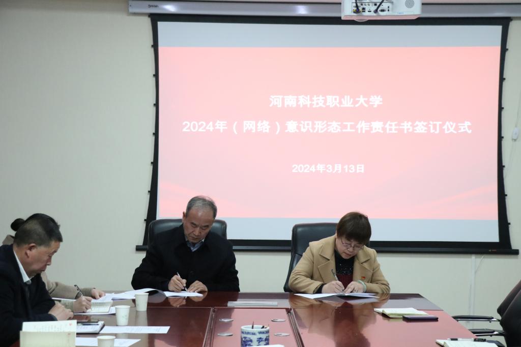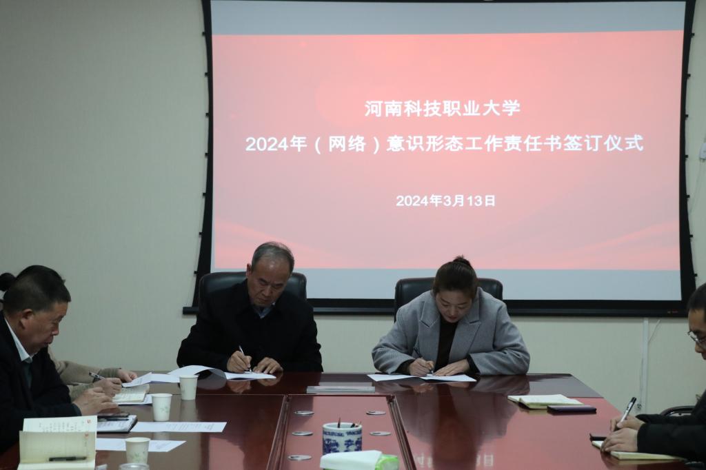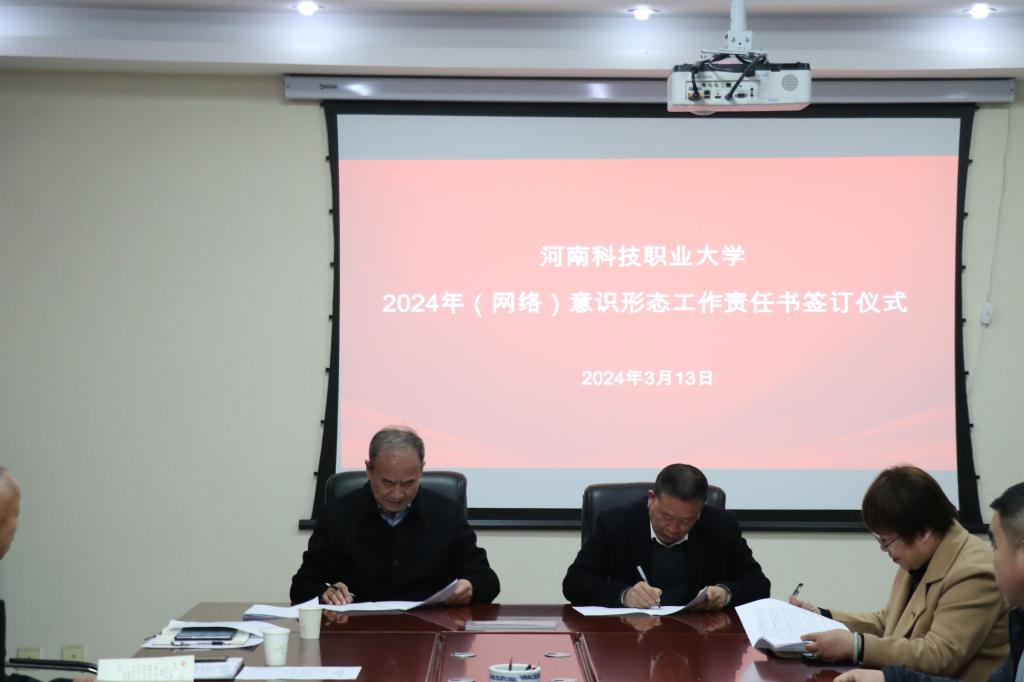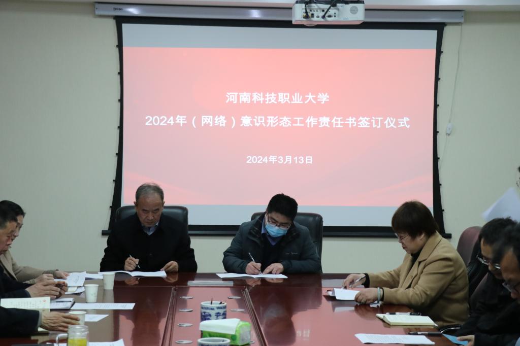 会上,宣传部副部长孔建富对学校2024年第一季度意识形态领域存在风险进行了分析研判,各学院分别围绕当前师生意识形态和安全稳定工作形势、存在问题和风险、防范处置措施等方面做了交流发言,各单位负责同志与学校签订了《2024年意识形态工作责任书》。